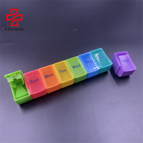 2025 Athmedic Rainbow Color 7-compartimentos pastillero desmontable Pastillero con cortador